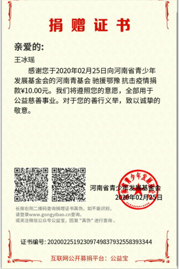 除了身体力行的社区志愿服务,同学们也都纷纷捐款献爱心,数不在多,在于同学们浓浓的心意。也表达了对抗战一线医护工作者的敬意!