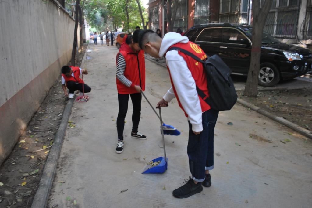 在同学们的共同努力下,原本满是落叶的街道被打扫的干干净净。为了保证清扫彻底,大家不放过任何一个角落,尤其是针对垃圾死角,采取“地毯式”清理,隐藏在内的垃圾被源源不断地清扫出来。随着垃圾的不断减少,社区周围的面貌也焕然一新。