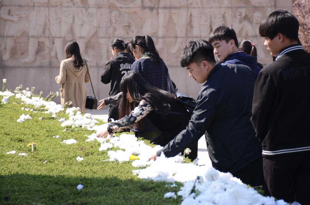 清明扫墓祭忠魂,和平不忘挖井人。在革命烈士纪念碑下,师生们纷纷献上亲手制作的小白花,鞠躬默哀以缅怀那段逝去的峥嵘岁月,表达深切哀悼和无限敬仰之情。