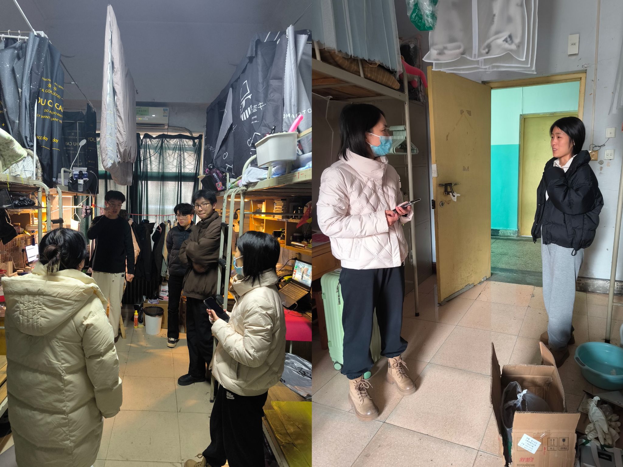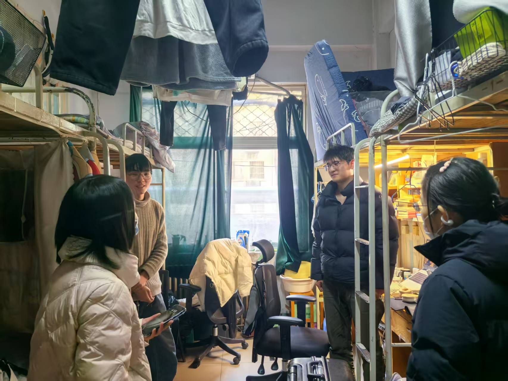 2025年春季学期伊始,为切实做好校园安全稳定工作,深入了解员工提前返校情况,2月18日,公司党委副书记王冰带领学工办主任闫亚萍、团委书记刘冰、2021级辅导员刘珂萌等老师走进员工宿舍,慰问提前返校参加事业单位宣讲招聘会的毕业班同学,为他们送去新学期的问候和关怀。
