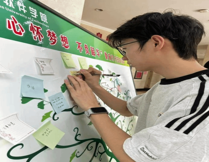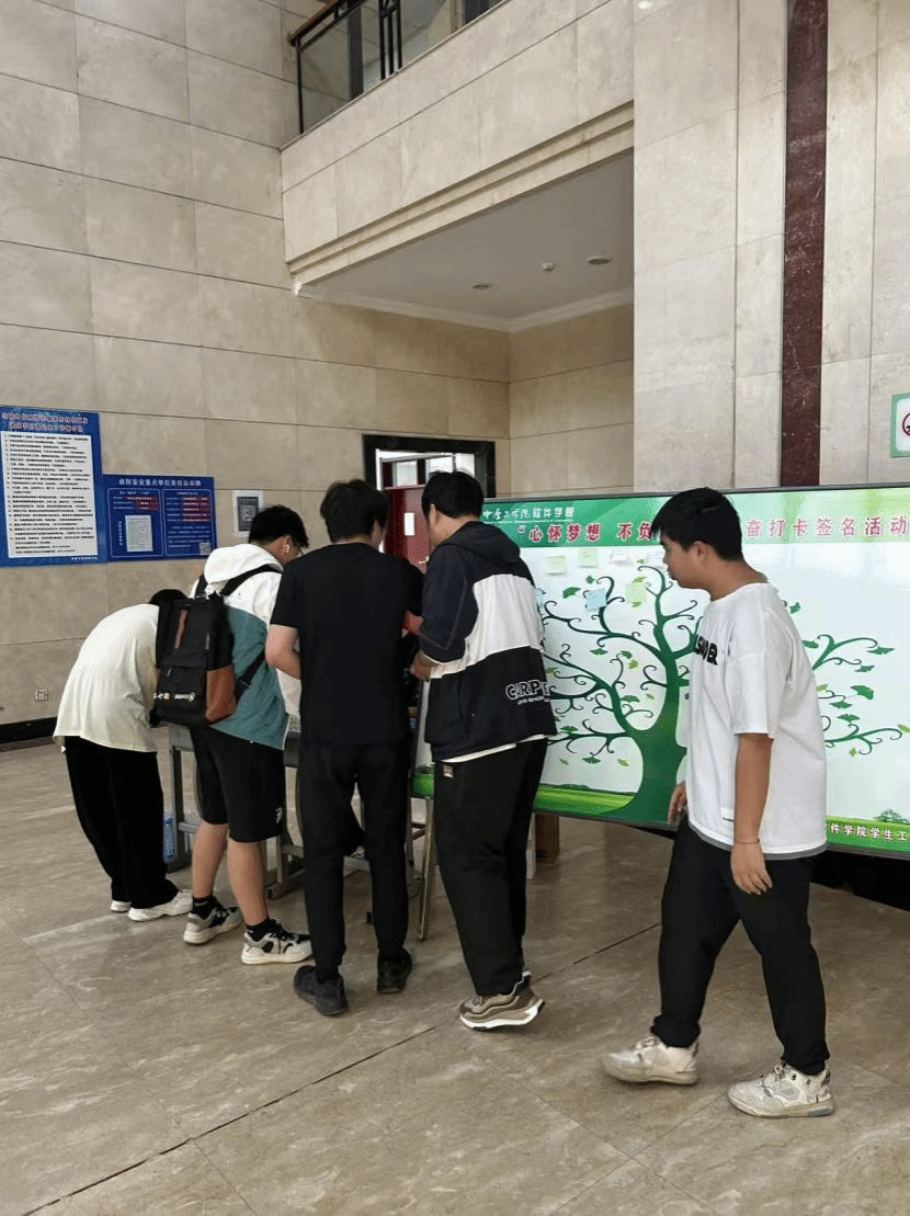 活动期间,同学们早早到达活动地点,以实际行动践行时间管理。在奋斗寄语留言环节,大家纷纷在打卡处写下个人学习计划、励志语句或成长感悟,一笔一划的签名不仅是参与活动的记录,更是对自我成长的承诺与激励。现场氛围热烈,字里行间洋溢着青春奋斗的热情。