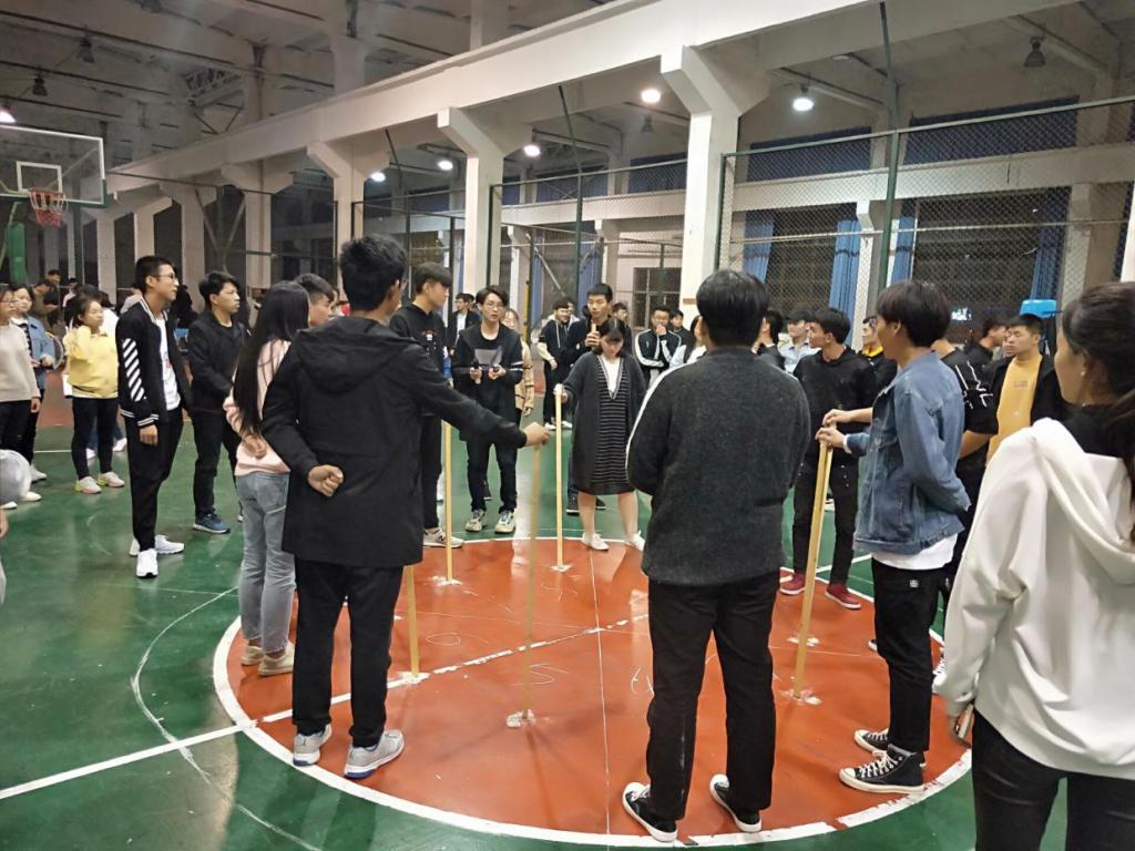 此次测试的项目有十人九足、不倒森林、毽子接力、心灵手巧、搭桥过河、环环相扣、盲人旅行、袋鼠运瓜、集体跳绳共九个趣味项目。各个项目的参赛人员的集结完毕后,第八届心理运动拓展大会测试正式开始!