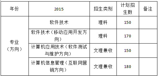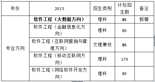 答:2015年公司招收的本科专业为软件工程大数据、金融信息化、互联网营销与管理、移动互联网、网络软件开发五个方向,其中大数据为新增方向。文理兼收的专业只有软件工程(互联网营销与管理方向)。