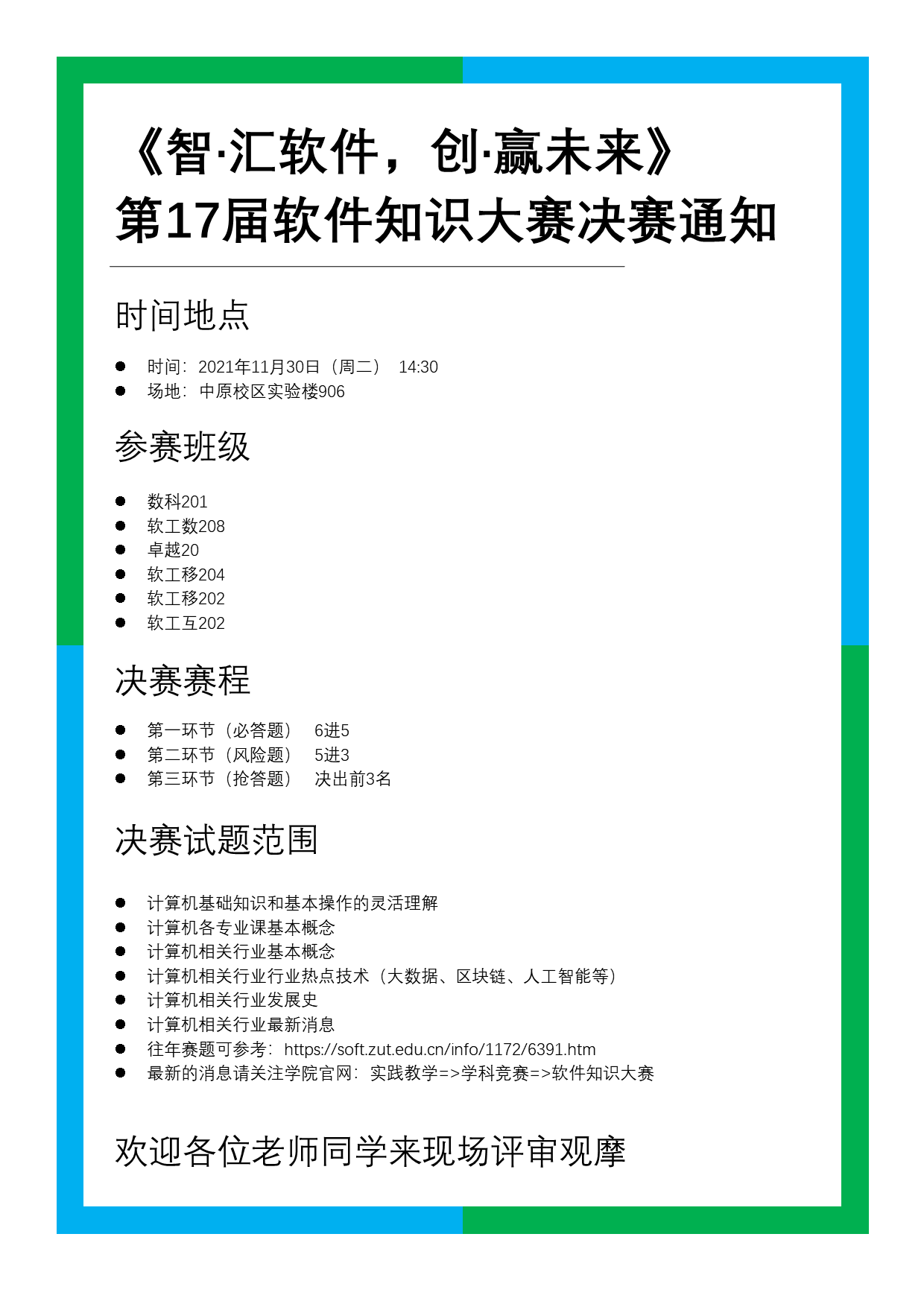 当前位置: 首页 >> 公司公告 >> 正文 第17届软件知识大赛决赛通知 发布日期:2021-11-28 来源:伟德体育官方网站 点击: 上一条:伟德体育官方网站第十七届软件设计大赛进入决赛名单公示 下一条:2021第十七届软件知识大赛初赛成绩