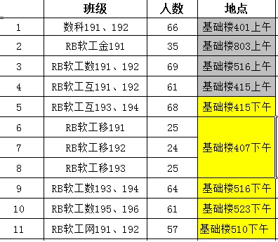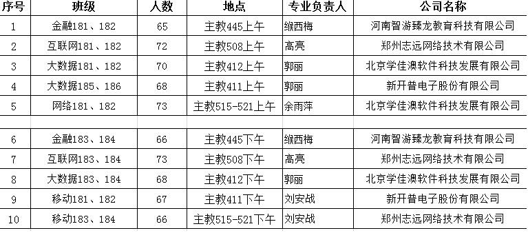 由于2020级还要上课到16周,中间或有课题教室有课的情况,请各班提前在公司的“校课表查询”了解情况告知实践指导老师。